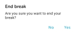 When the option, On a break, has been tapped, a dialog box is displayed to set the type and length of the break.