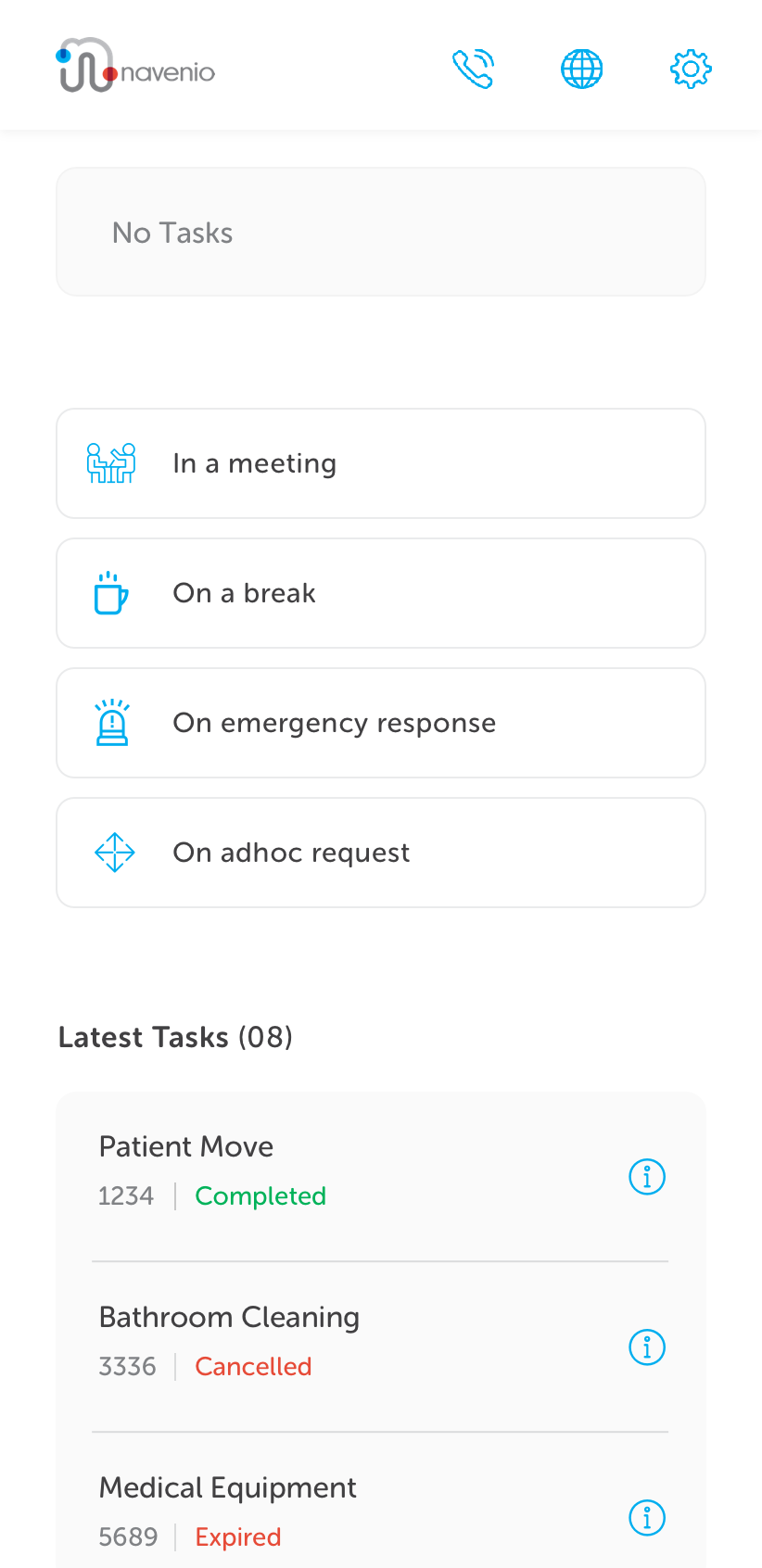 To view more information about a task listed in the Latest Tasks, tap the information button next to the task.