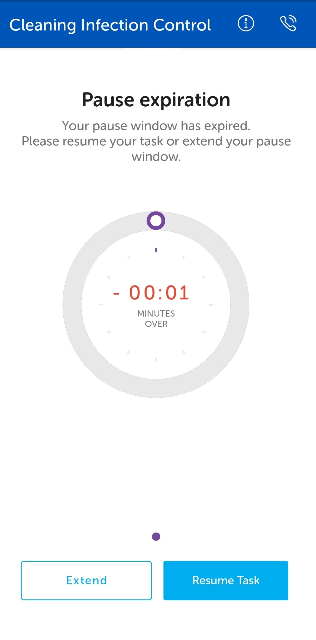 Tap the Extend button to restart the timer for another five minutes. The extension time is the same amount of time configured for pausing a task.