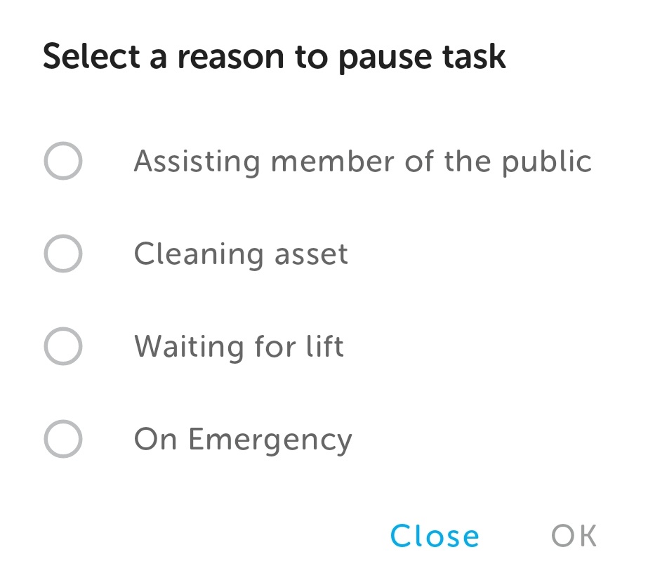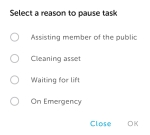 Tap the Pause icon on the phone and reasons for the task pause are displayed.