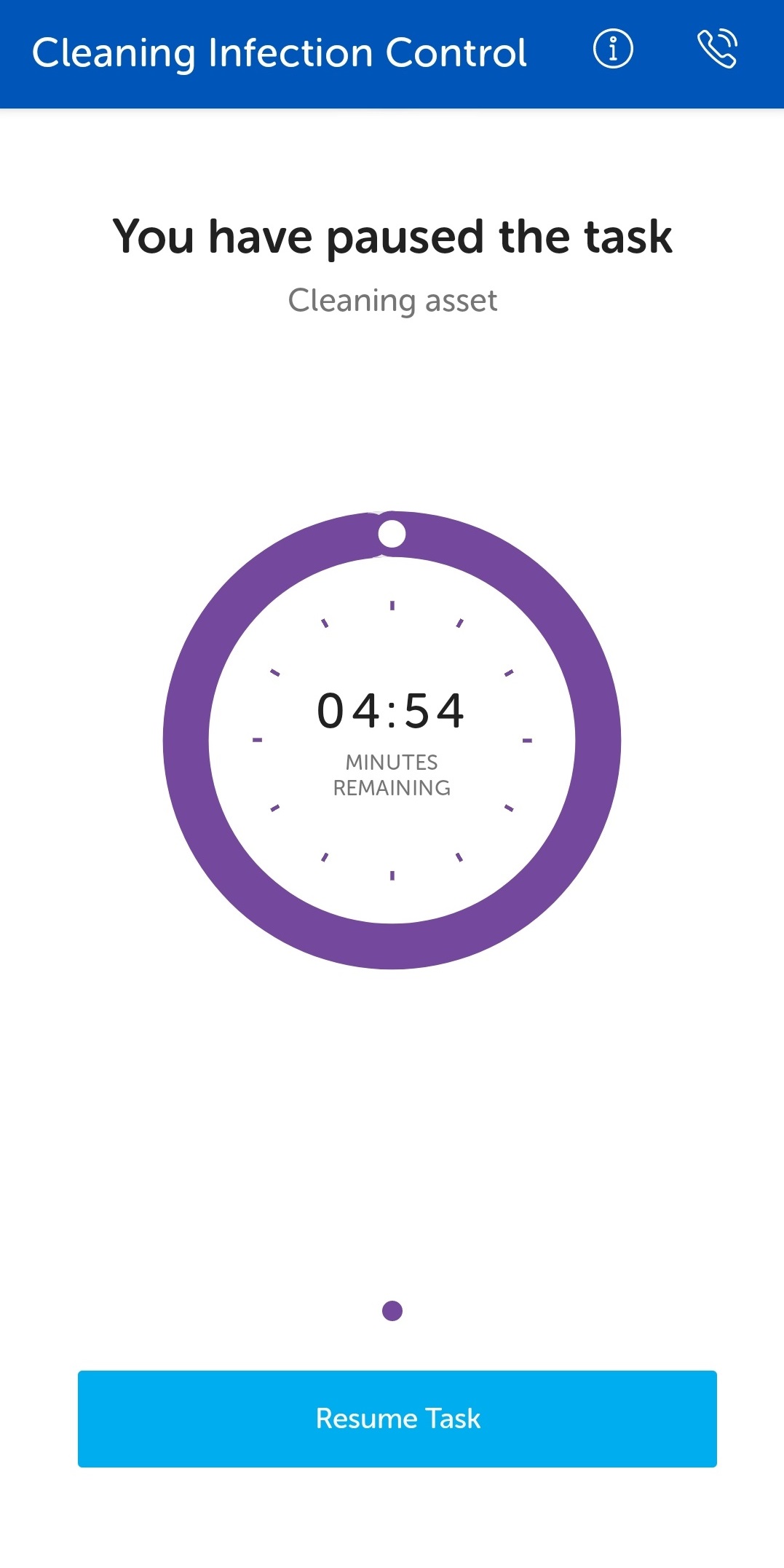 If there are any delays to the task, for example, the patient is not ready, the task can be paused. This updates the task status which is displayed on the IWS Portal.
