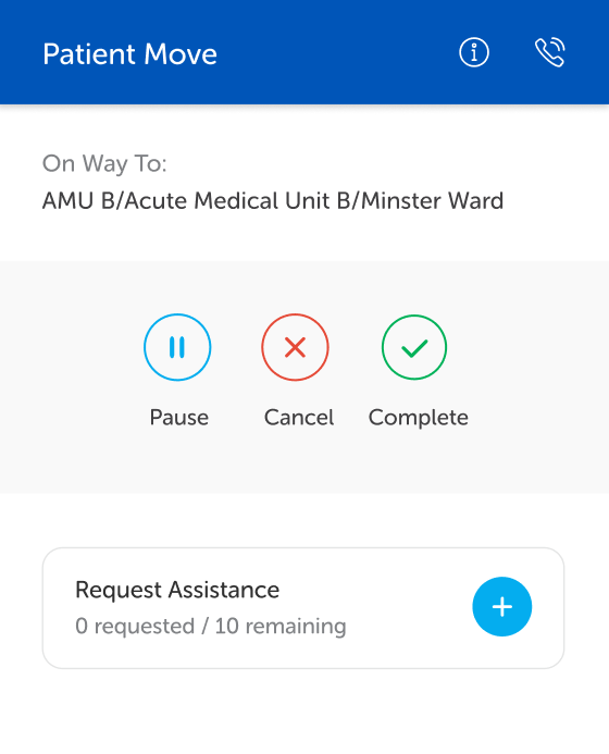 At the top of the screen, the On Way To: displays the first waypoint of the task. This section displays the task progress as the task handler proceeds through the waypoints in the task. For example, it could display "At Admin" to start then display "On way to Ward 44" and then "At Ward 44".