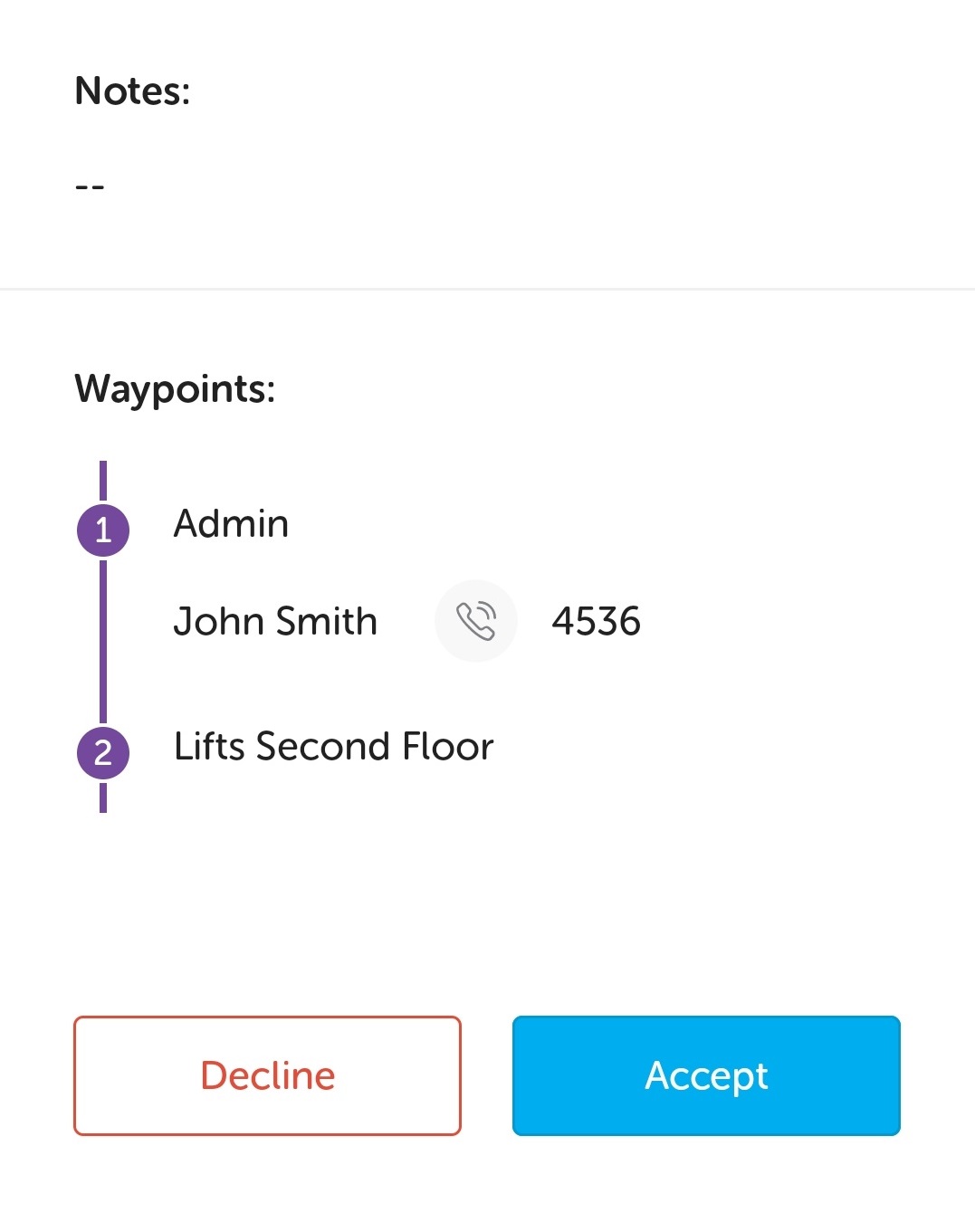 Tap Accept to perform the assigned task.