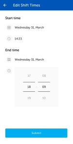 Amend the shift time as required and tap Submit. For details on editing shift times, please refer to Shift Times.